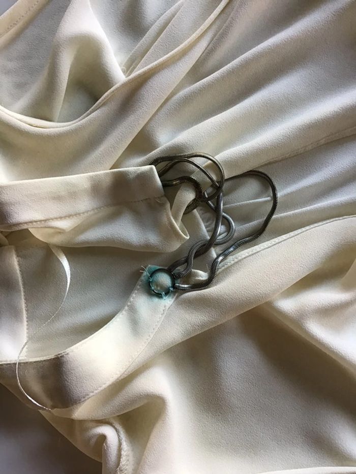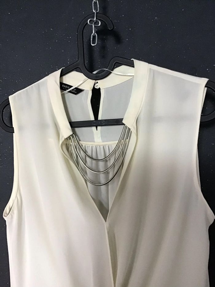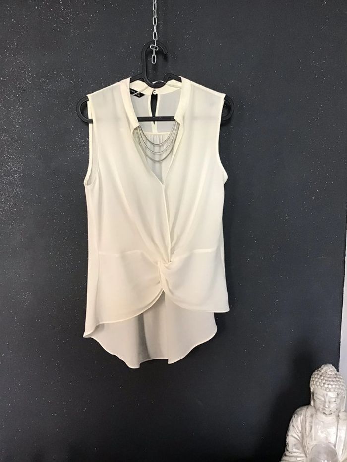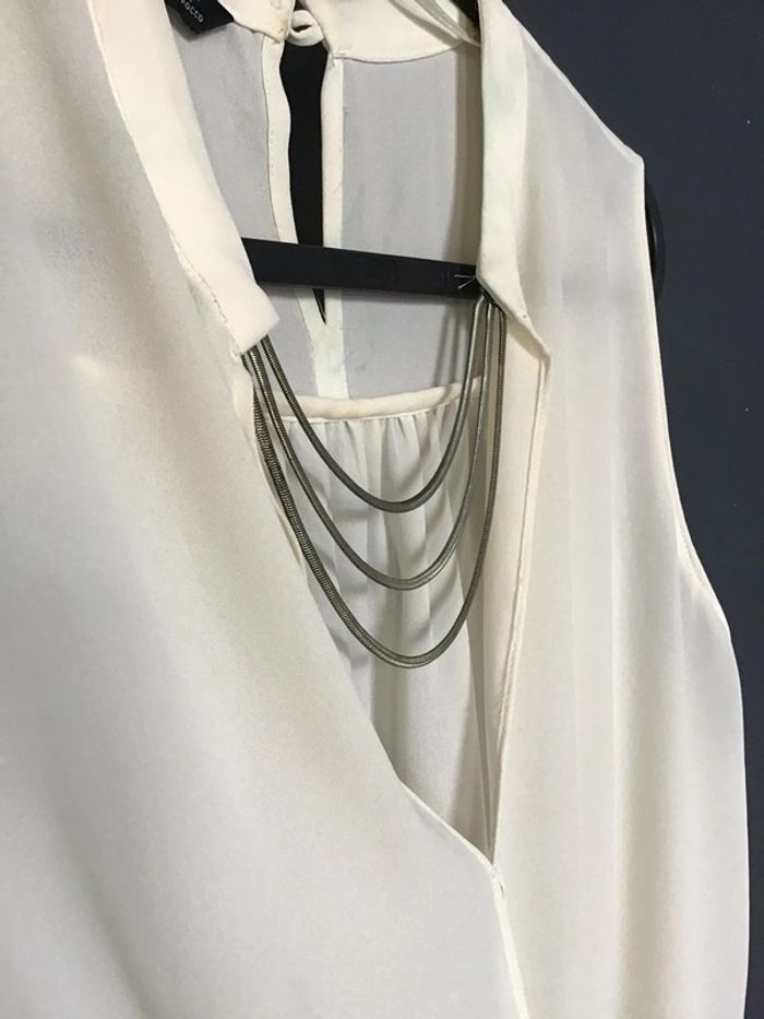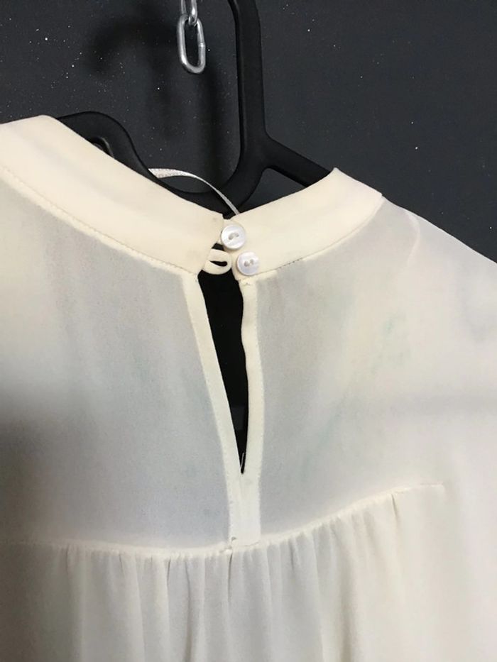 blouse avec encolure bijou des petites fronces dans le dos effet noué devant le bijou à verdi à l intérieur mais ne se vois pas voir dernière photo le recto et le verso plus d etiquette pour la matière prob polyester #chantalmateja2021 #blouse #chic #fete #raffiné #zara #noble #blanccasse #crème #ivoire #basic #collection #chantalmatejahauts34 #chantalmatejatenuedefete #chantalmatejamalo