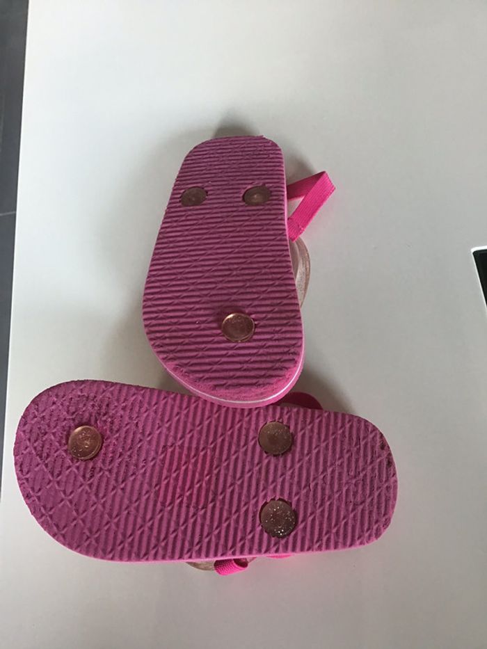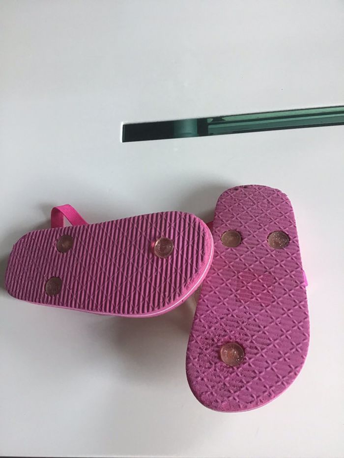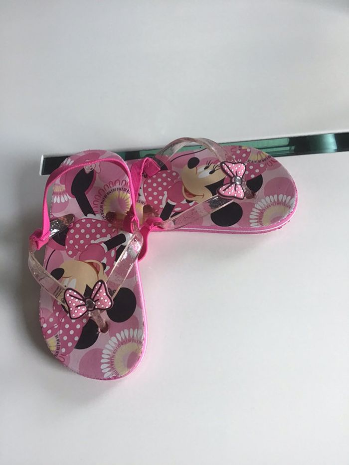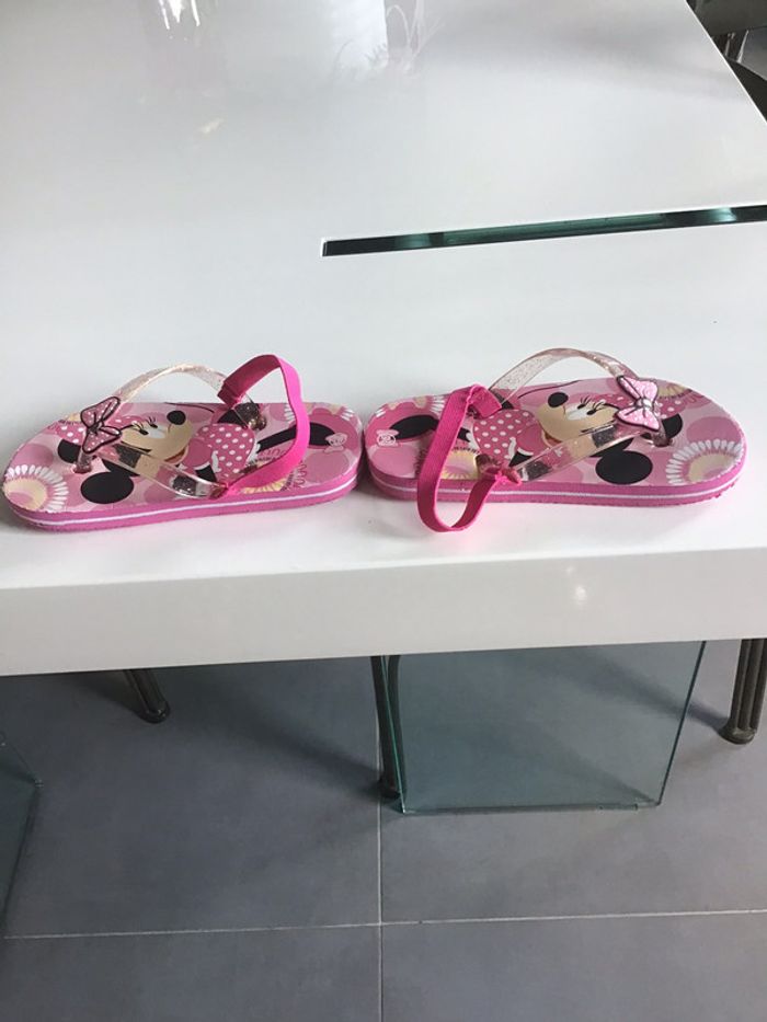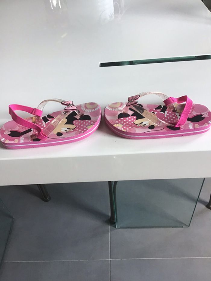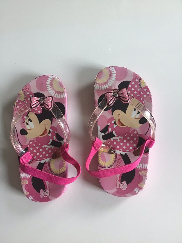 tongs Minnie avec élastique de maintien portées mais encore en très bon état #chantalmateja2021 #tongs #enfant #minnie #élastique #fille #rose #chantalmatejachaussuresenfant
