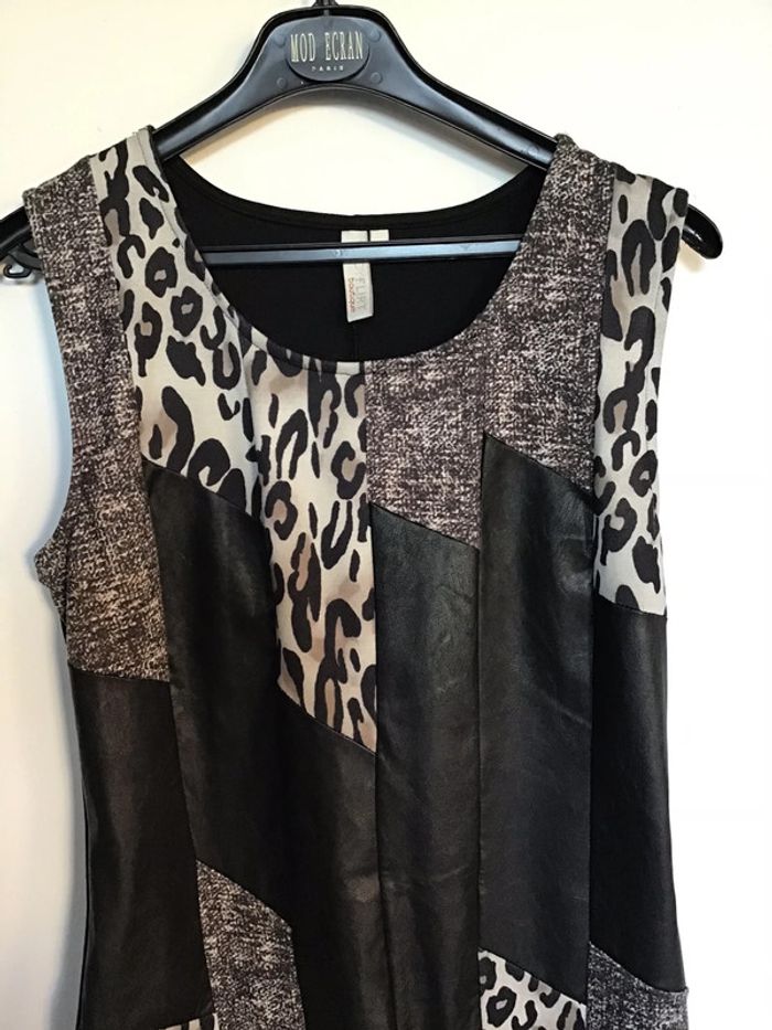 robe bi matière avec motifs animalier le dos est uni noir #chantalmateja2021 #robe #bimatière #fauve #animalier #leopard #chantalmatejarobes38 #chantalmatejachame