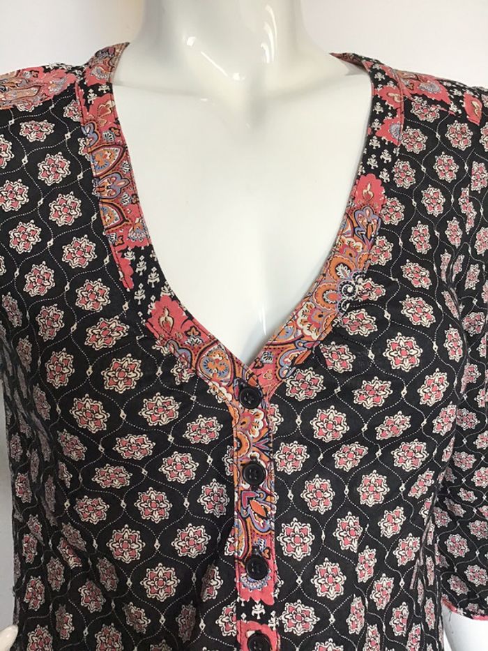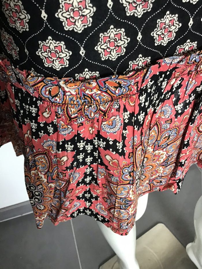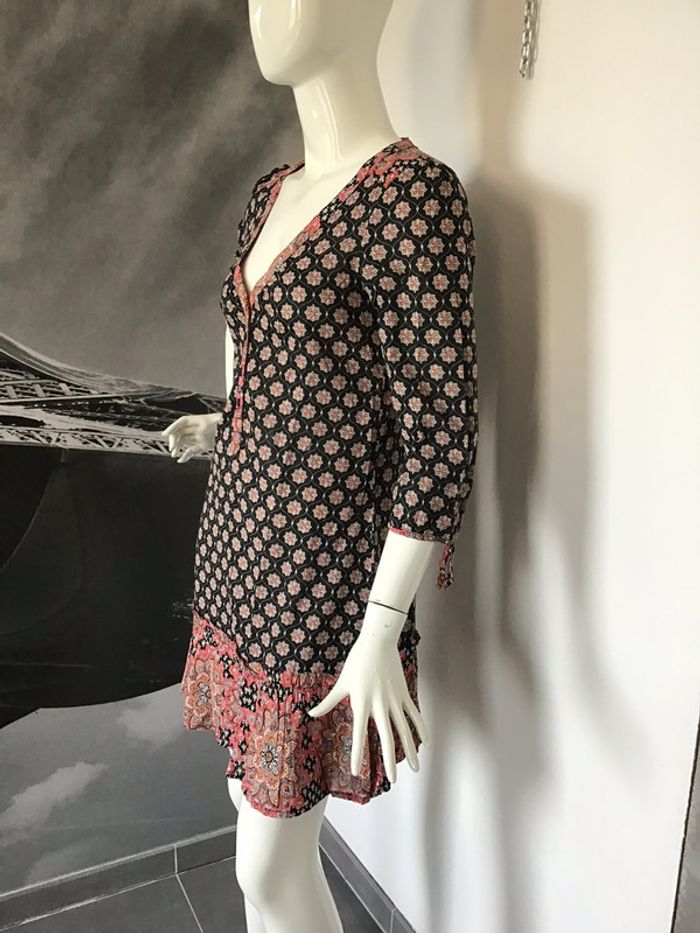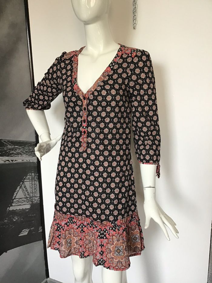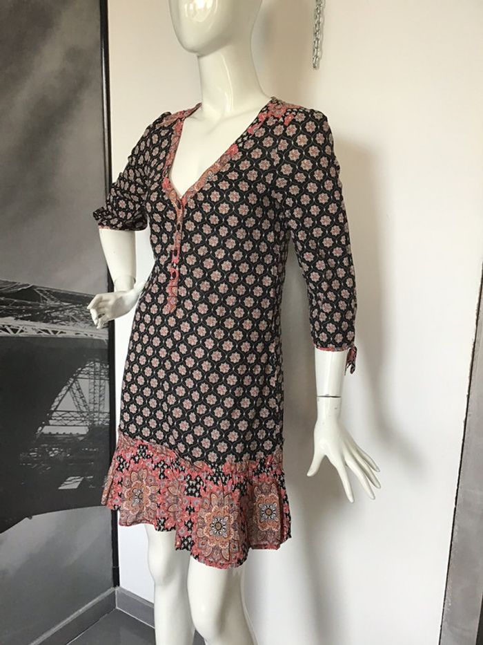 robe légère à motifs en coton encolure en V galbant la poitrine volant dans le bas galon aux manches trois quart très peu portée comme neuve #chantalmateja2021 #robe #été #légère #imprimé #chantalmatejarobes