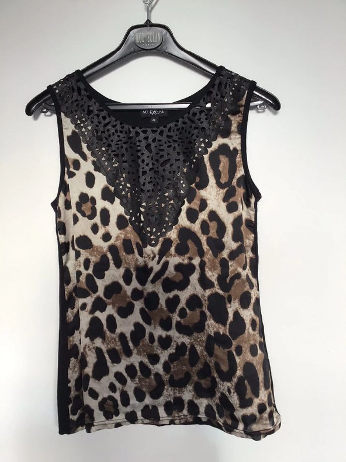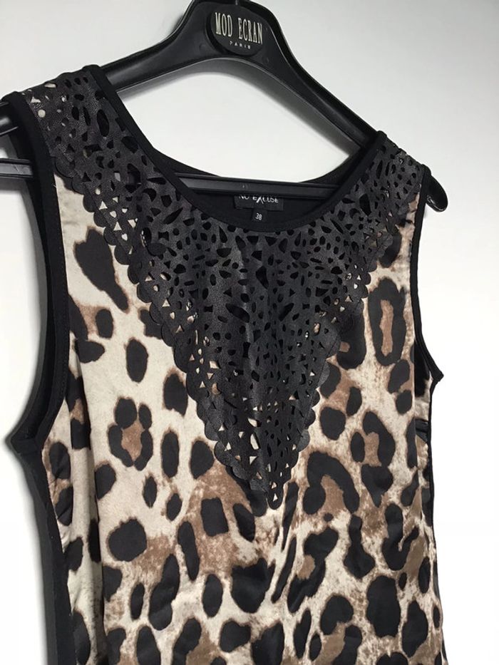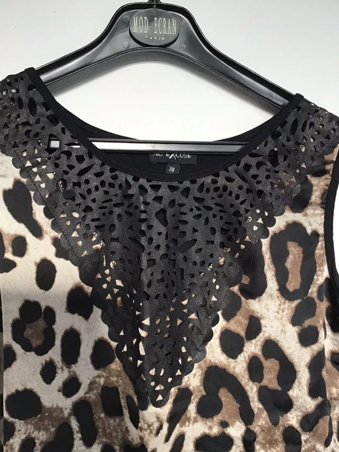 Top animalier encolure ajourée bi matière effet satiné - photo numéro 1