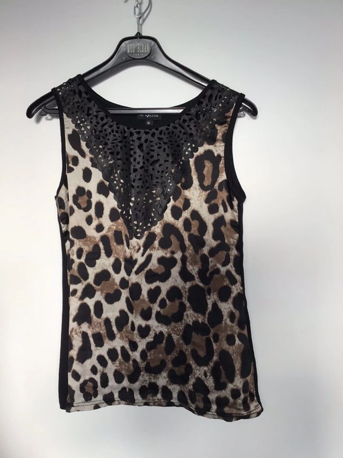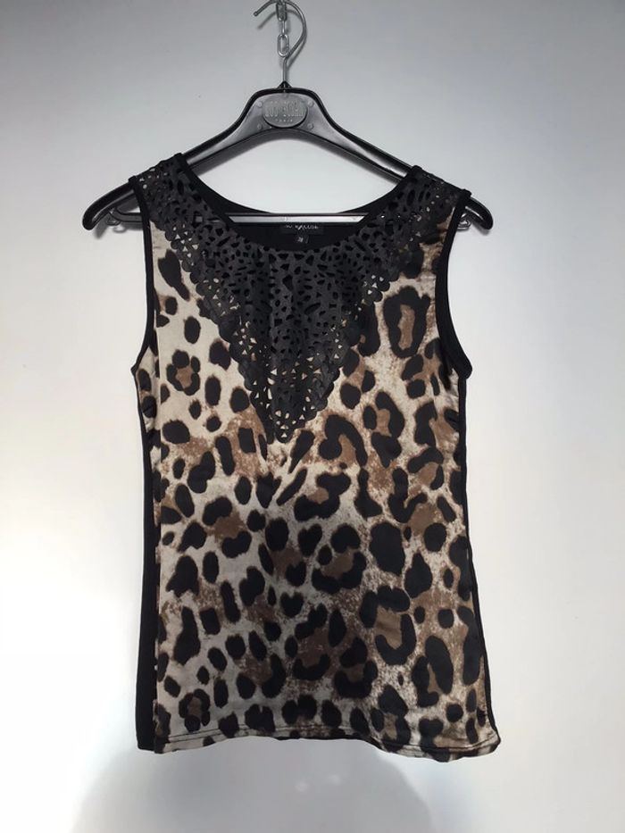 top motifs animalier dont l encolure est d une matière différente (faux cuir)et joliment ajourée 100% polyester effet satiné le dos est un mélange de viscose elasthane donc étirable #chantalmateja2021 #top #blouse #bimatière #animalier #noexcuse #chantalmatejahauts38 #chantalmatejachame