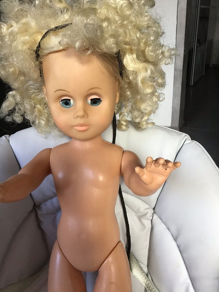 poupée à chevelure frisée des années 86/87 elle a été bien manipulée à un œil qui ne se ferme pas très bien ou ne s ouvre pas très bien visage en silicone à mon avis et corps en plastique dur quelques tâches pourrai encore amuser une enfant #chantalmateja2020 #poupeevintage #poupee #frisée #chantalmatejadivers #chantalmatejapouponspeluches