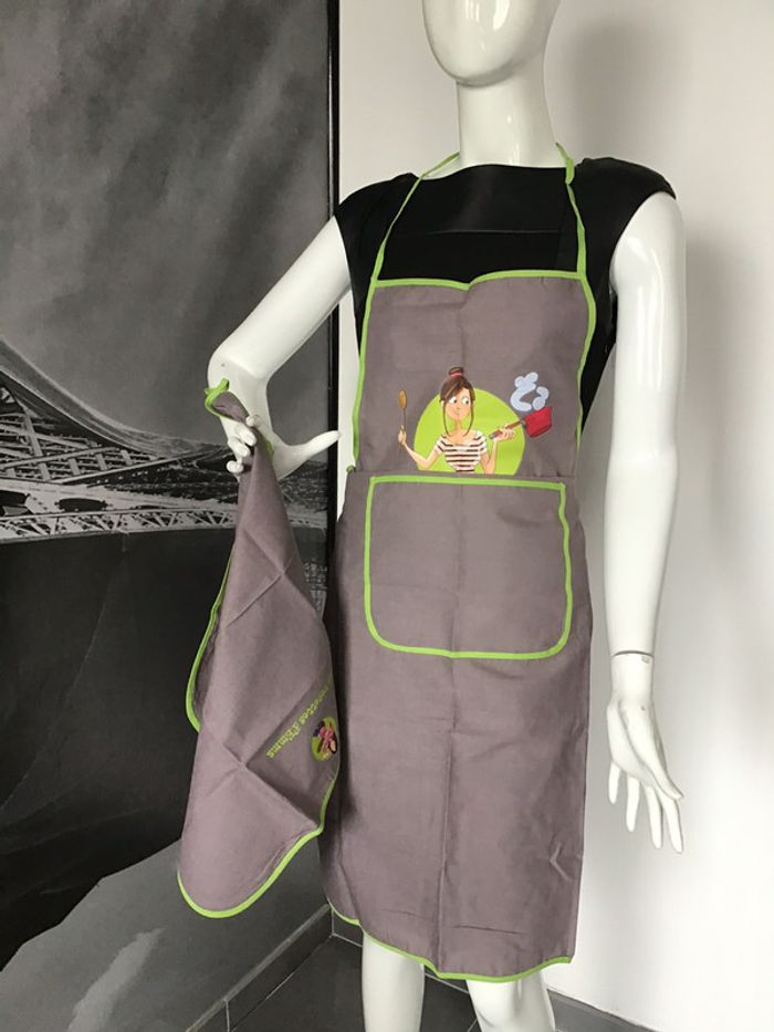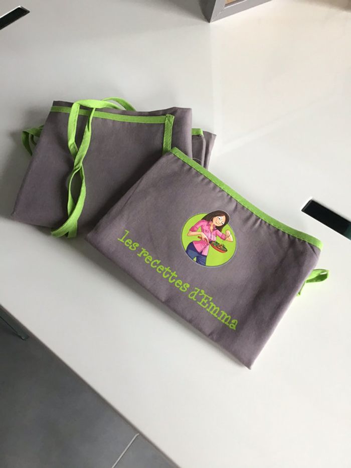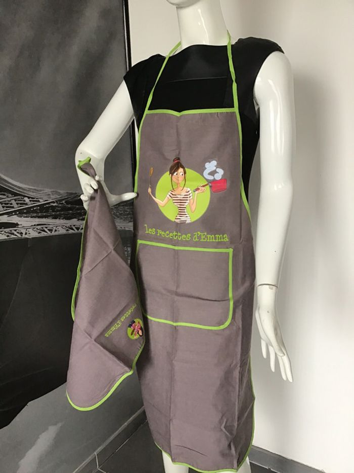 tablier de cuisine et un torchon marron et vert les recette de Emma Neuf emballé #tablier #tablierdecuisine #chantalmatejadivers