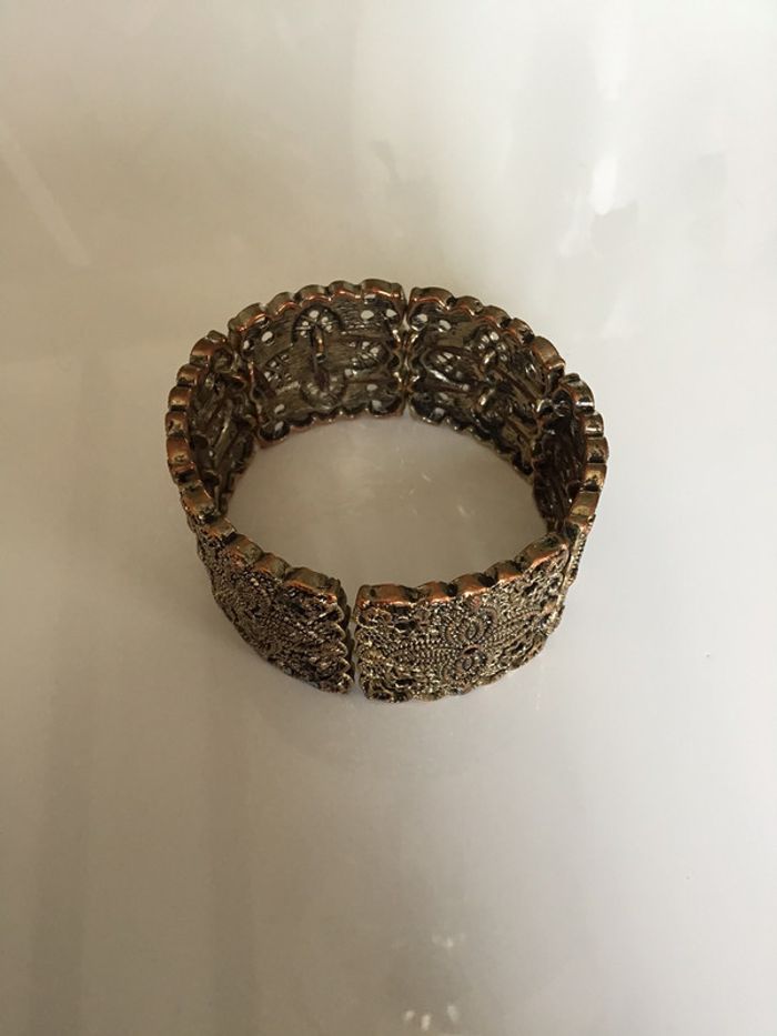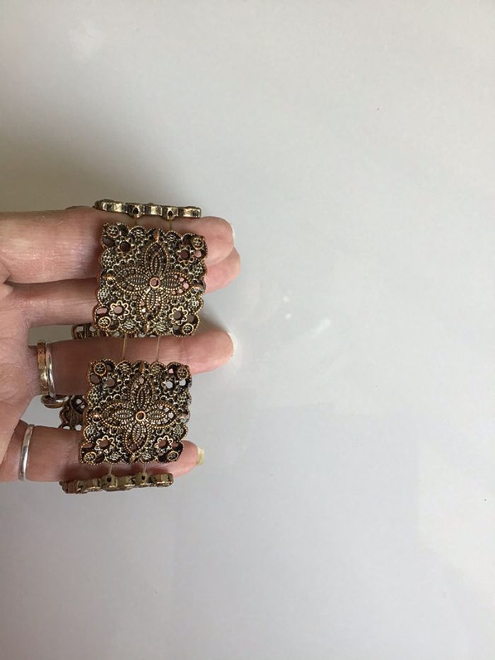 bracelet composé de six pièces reliées par deux élastiques en métal couleur doré et cuivré 6 cms de diamètre mais s étiré pour une largeur de 3 cms #chantalmateja2020 #bracelet #vintage #doré #cuivre #élastique #metal #chantalmatejabijoux #chantalmatejamalo