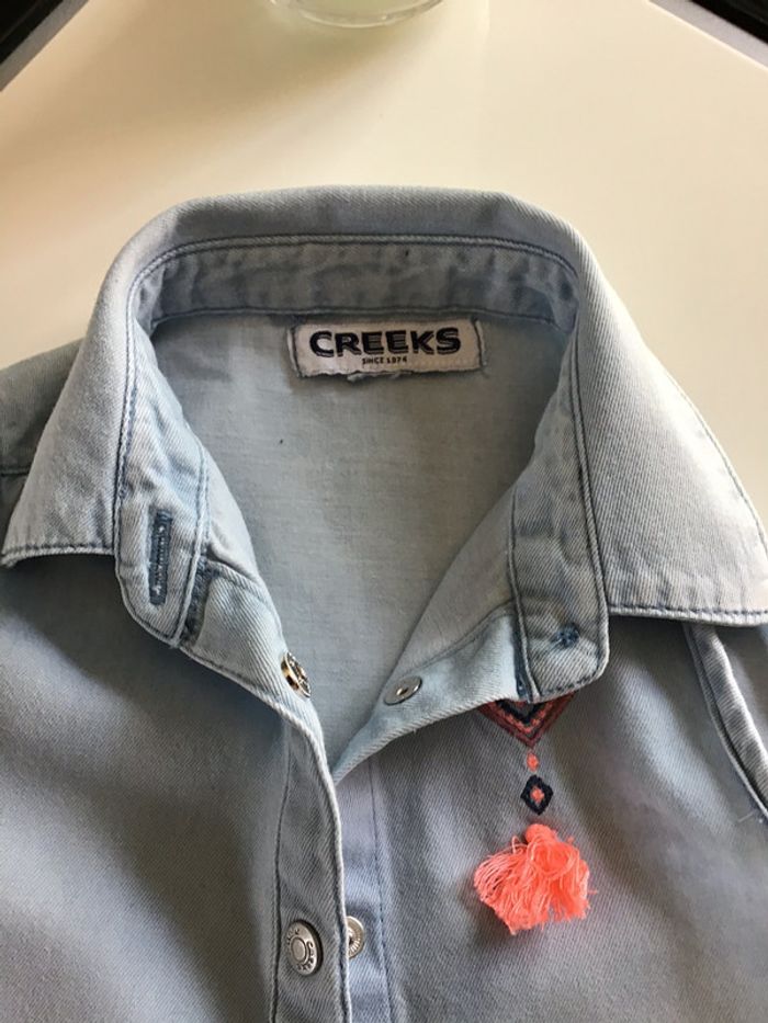 petite chemise sans manche en coton bleu jeans #chemisefille #sansmanche #creeks #pompon #chantalmateja2020 #chantalmatejadouzemois #chantalmatejavic