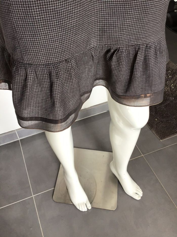 robe à bretelles volant dans le bas élastique sous les aisselles pour un meilleur rendu au niveau de la poitrine haut de la robe orné d un ruban marron mordoré irrise ainsi que le bas fermeture éclair dans le dos poches sur les côtés tres peu portée coton viscose et laine #robeété #epaulesdecouvertes #bretelles #chic #chattawack #athypique #baindesoleil #chantalmatejarobes38 #chantalmateja2020 #chantalmatejamalo