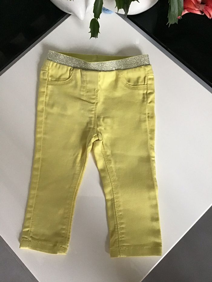 pantalon jaune ceinture élastique à paillettes contient de l elasthane 6/9 mois 71 cms #pantalonfille #tapealoeil #jaune #paillettes #chantalmatejasixmois #chantalmateja2020 #chantalmatejaneufmois #chantalmatejavic