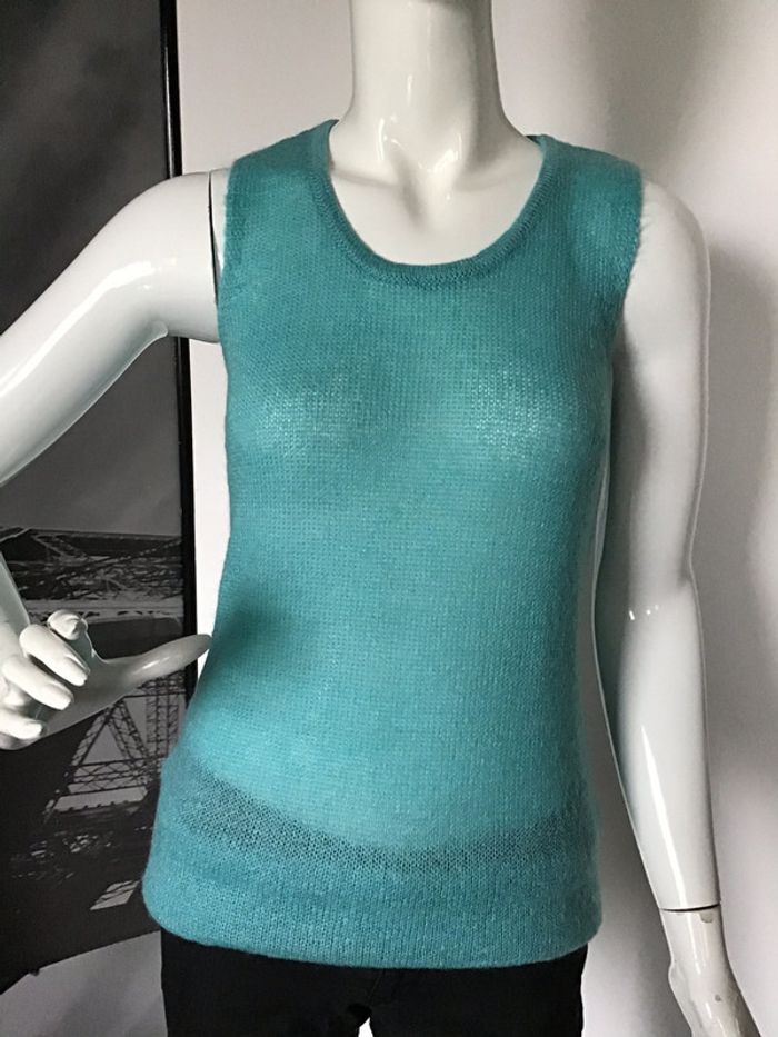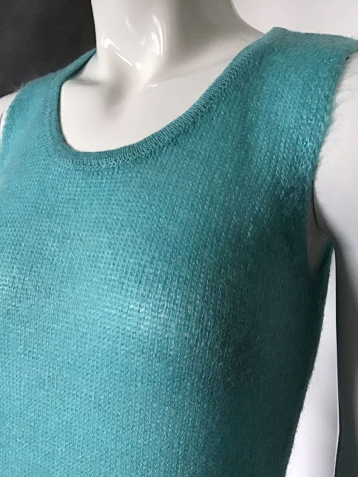 pull long ou pull tunique vintage couleur turquoise 30% mohair 30% polyamide et 40% acrylique peut se porter de différentes façons longueur totale à plat 75 cms épaules de couture à couture 30 cms sous les aisselles 41 cms bas du pull 12 cms de cotes #pullvintage #pullsansmanche #mohair #pulltunique #pullchaussette #turquoise #chantalmatejahauts36 #chantalmatejapullsfemme #chantalmateja2020 #chantalmatejamalo