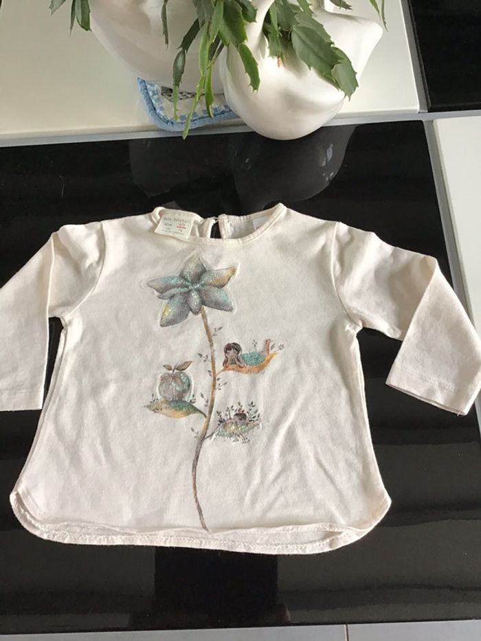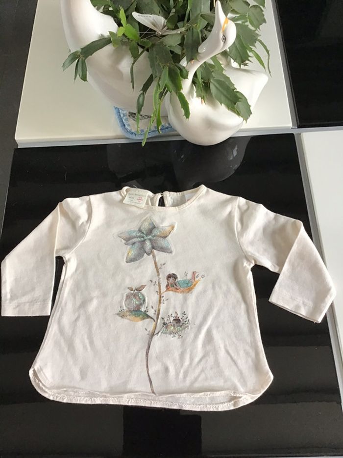 Tee shirt Zara motifs avec tulle 6/9 mois - photo numéro 1
