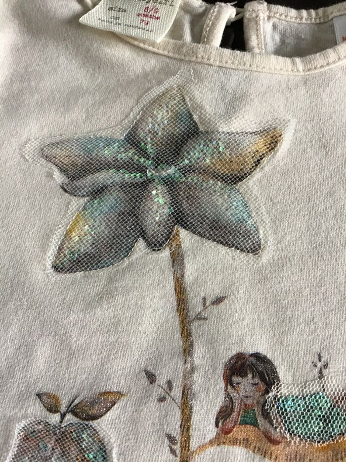 Tee shirt Zara motifs avec tulle 6/9 mois - photo numéro 2