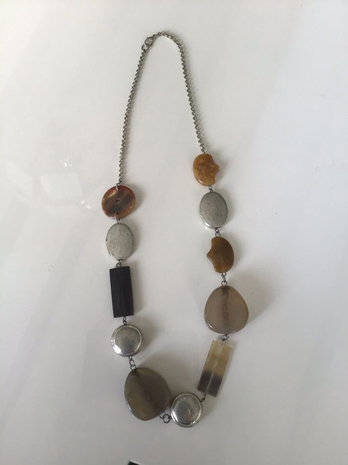 Collier fantaisie  vintage marron et argenté - photo numéro 1
