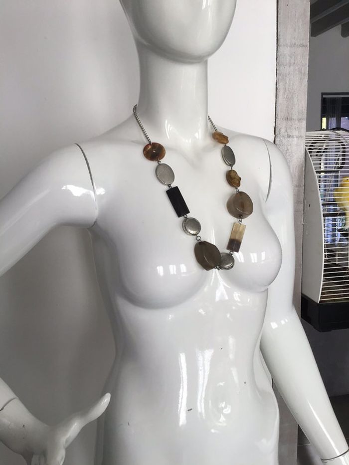 Collier fantaisie  vintage marron et argenté - photo numéro 4