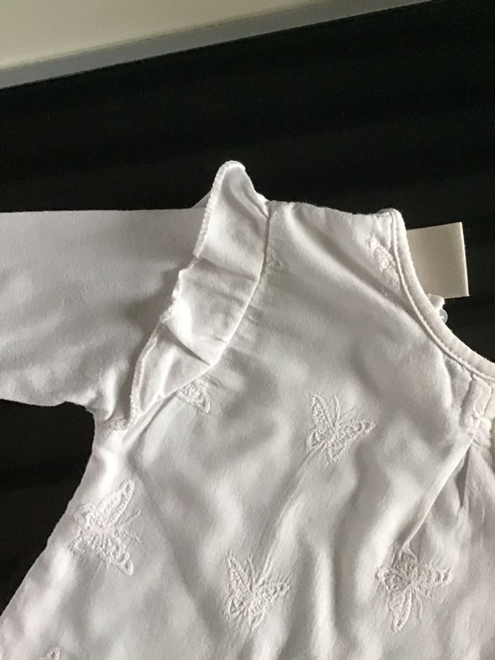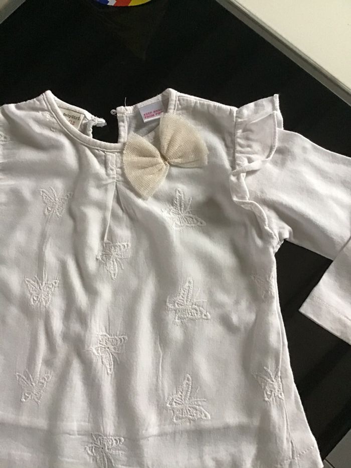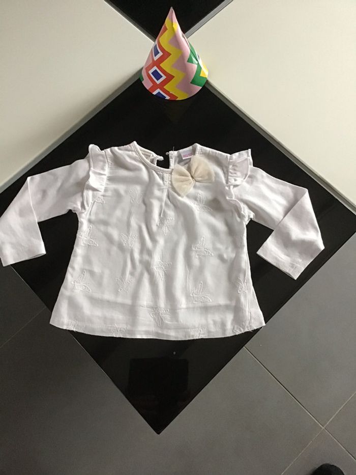 blouse tee shirt doublée devant avec broderies et petit noeud à l encolure 100% coton taille 9/12 mois 80 cms #blouse9mois #blousezara #teeshirtfille #chantalmatejaneufmois #chantalmatejavic #chantalmateja2020
