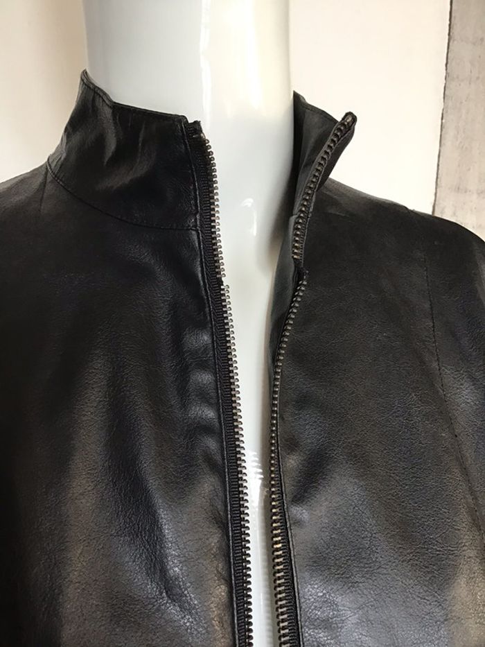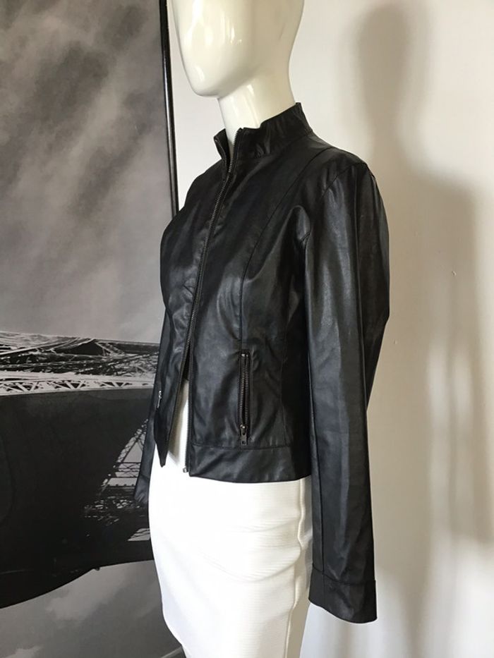 blouson en polyurethane noir ‼️ fermeture éclaire devant inutilisable manque le guide et cassée à deux endroits voir photos 3 et 4 et petit défaut au col photo 5 (microcoupure) largeur d épaule 38cms de couture à couture taille newlook 10 a porter ouvert #blousonfemme #newlook #polyurethane #chantalmatejavestes36 #chantalmateja2020 #chantalmatejamalo