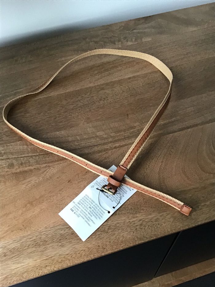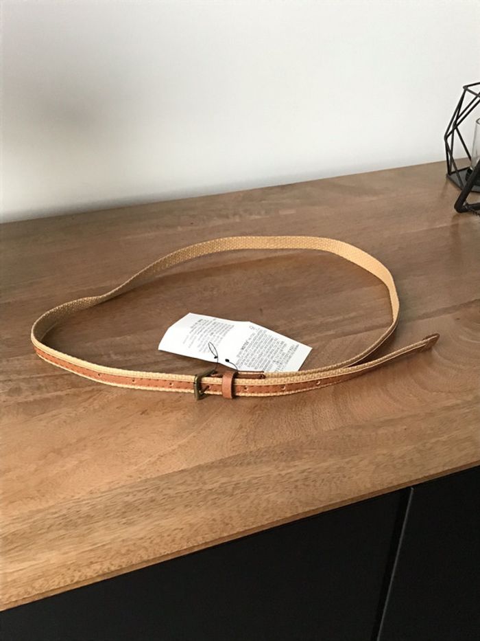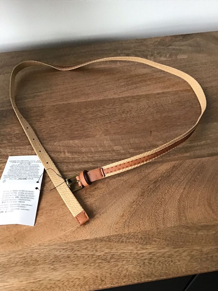 fine ceinture beige et marron matière pâte de cellulose polyuréthane largeur 1,3 cm longueur 97,5 premier trou à 71 cms dernier trou (7eme) à 86 cms convient à plusieurs tours de taille inditex zara #ceinture #beige #marron #chic #élégant #neuf #chantalmatejaceintures #chantalmateja2020