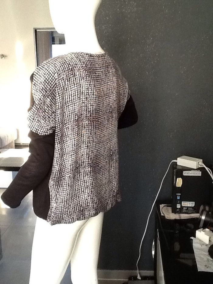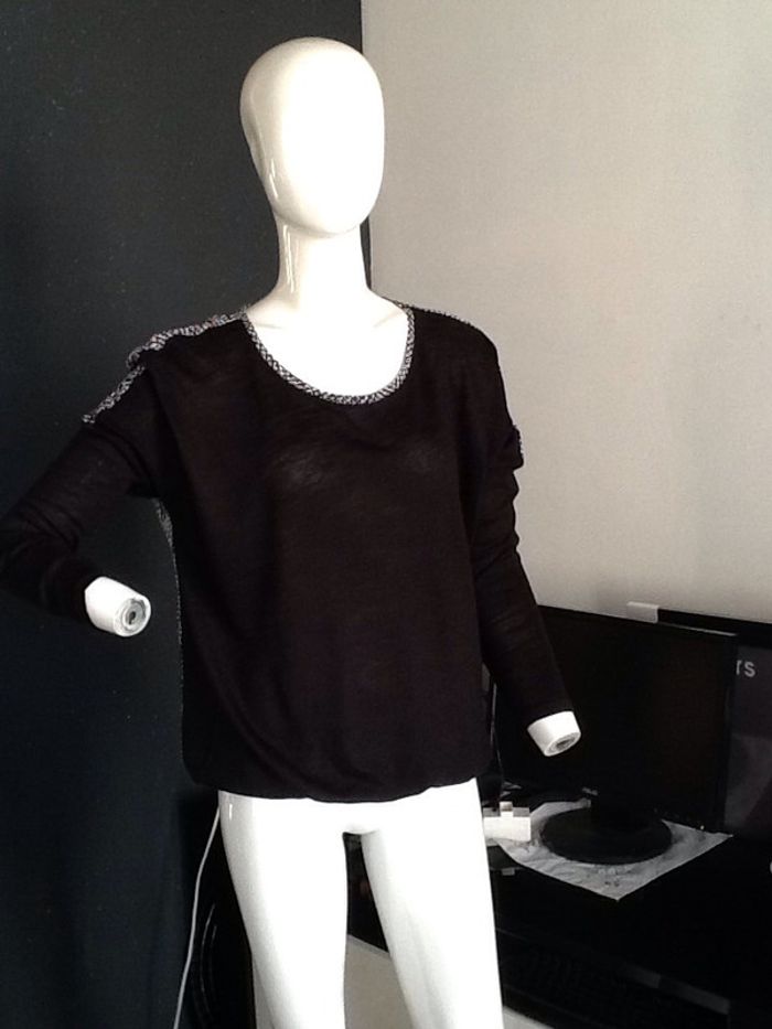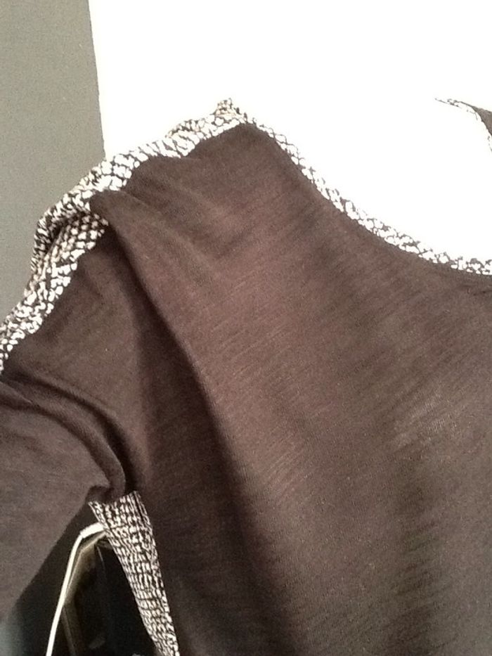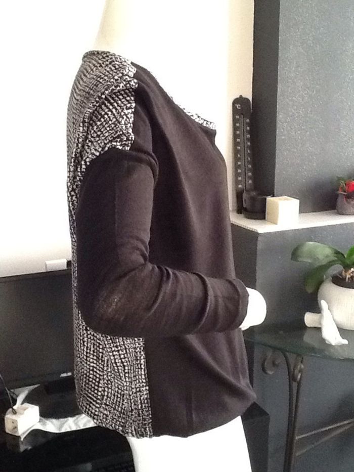 tête shirt devant noir et derriere pied de poule blanc et noir forme loose élastique dans le bas #pullfin #femme #bicolor #promod #chantalmatejahauts38 #chantalmateja2019 #chantalmatejaval