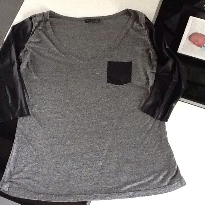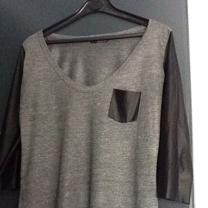 Tee shirt Zara gris avec les manches trois quart et une poche plaquee en simili noir comme neuf mis une fois #zara #top #teeshirt #bimatière #teeshirtfemme36 #teeshirtfemmebimatiere #teeshirtbimatiere #chantalmatejahauts36 #chantalmatejachame #chantalmateja2019