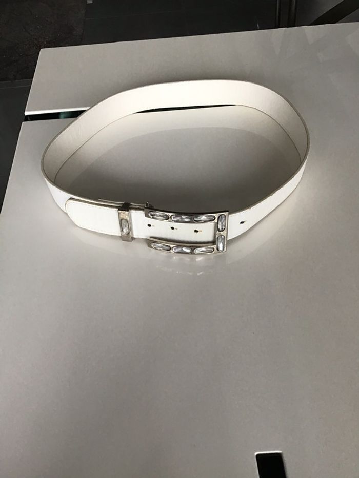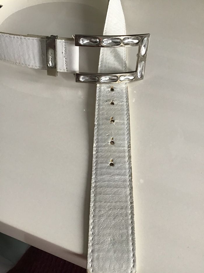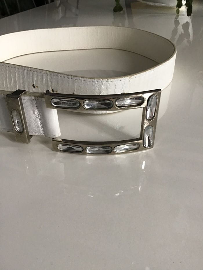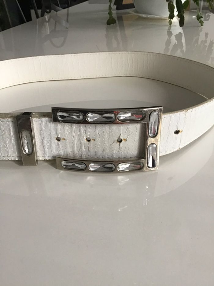 ceinture vintage avec boucle métal et pampilles un peu abîmée aux trous ainsi que sur le passant métal taille 90 synthétique ne pas hésiter à demander davantage de photos #ceinturevintage #blanche #bouclemetal #chantalmatejaceintures #pampille #strass #chantalmateja2020