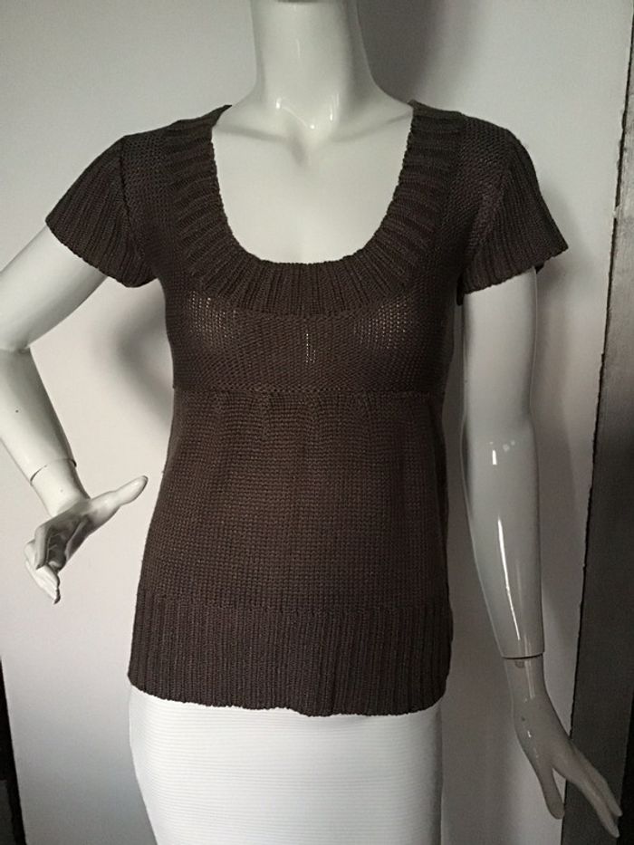 pull vintage manches courtes encolure arrondie petites pinces sous la poitrine taille 34/36 matière 73% acrylique 27% polyamide #pullfemmevintage #pull3436 #vintage #marroncuivré #chantalmatejapullsfemme #chantalmateja2020