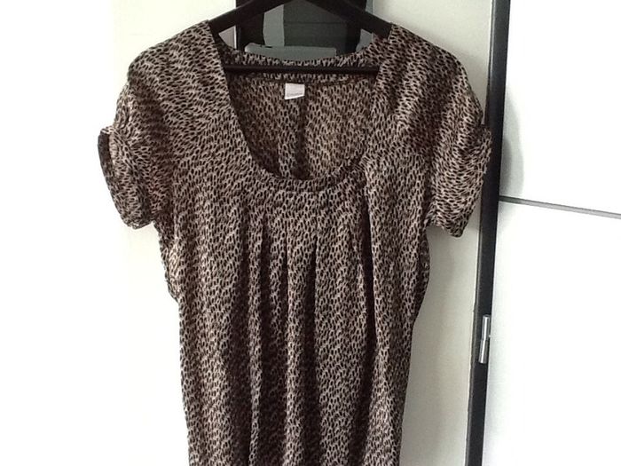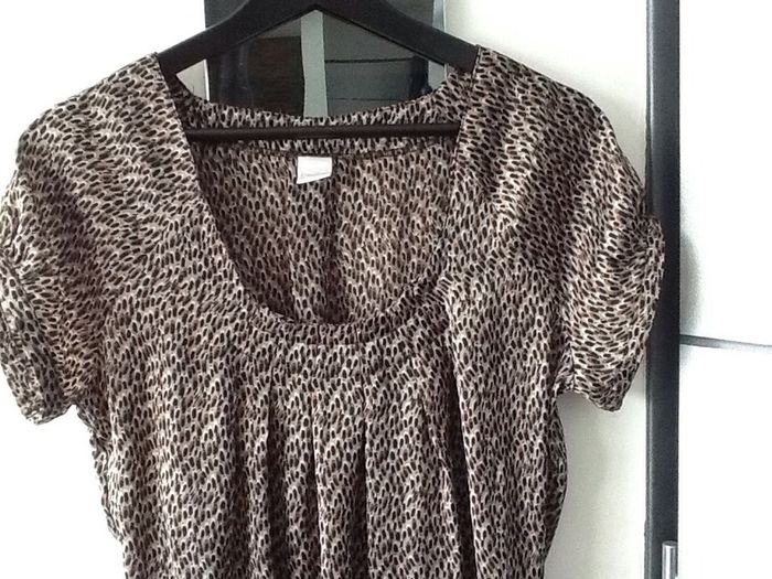 Top camaieu matiere polyester satin avec elastique dans le bas taille 36 correspond a mon avis a un 38 #top #blouse #camaieu #fauve #leopard #animalier #chantalmatejahauts38 #chantalmatejachame #chantalmateja2019