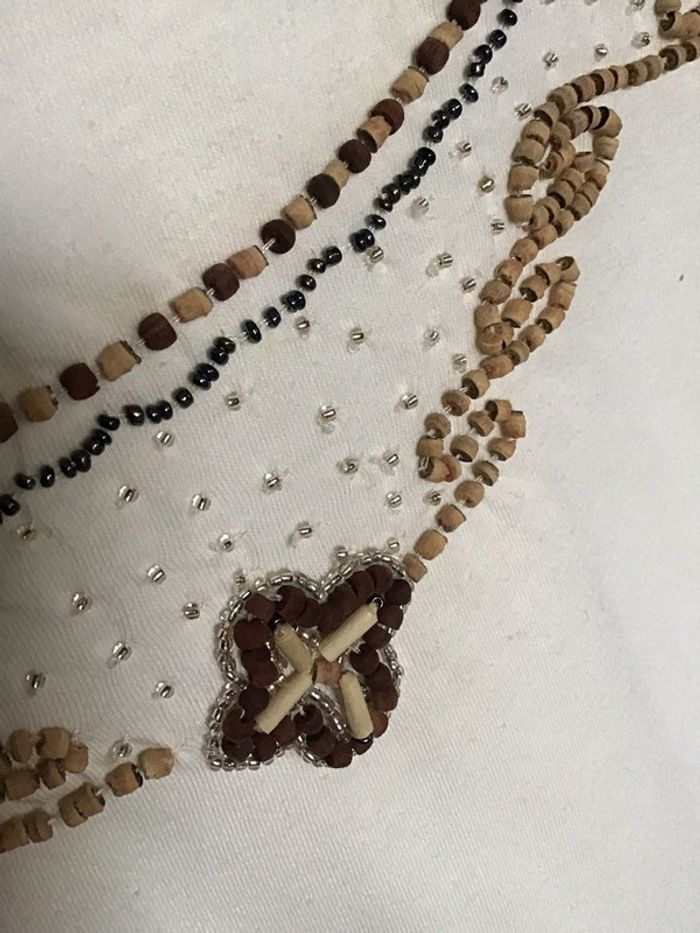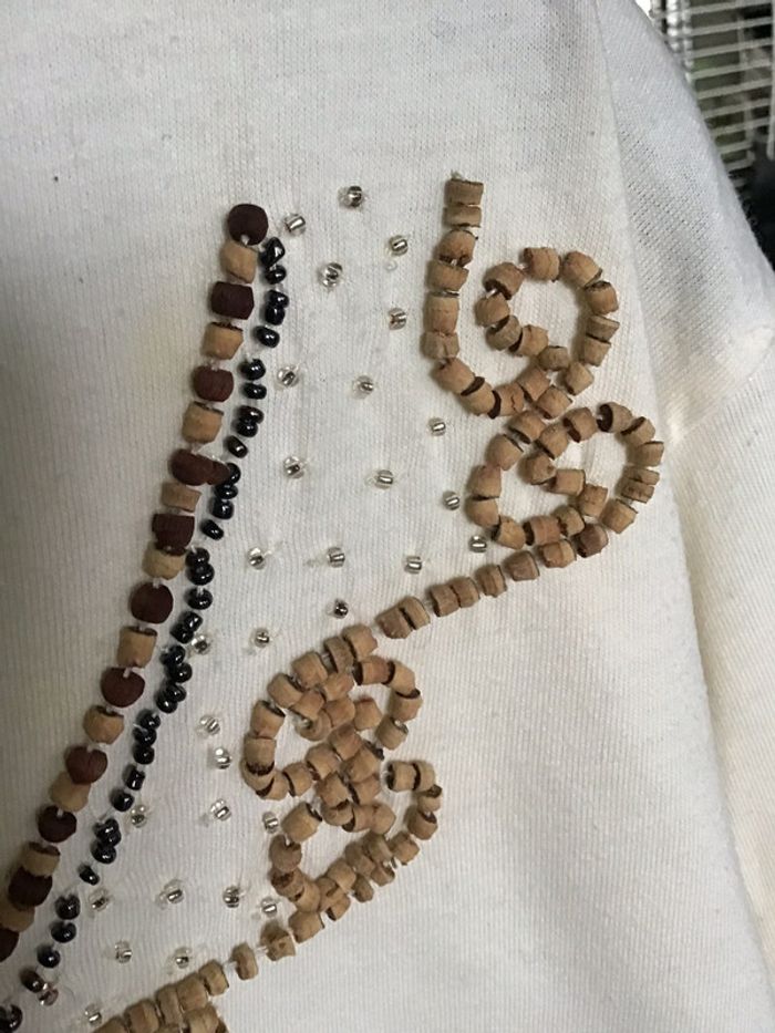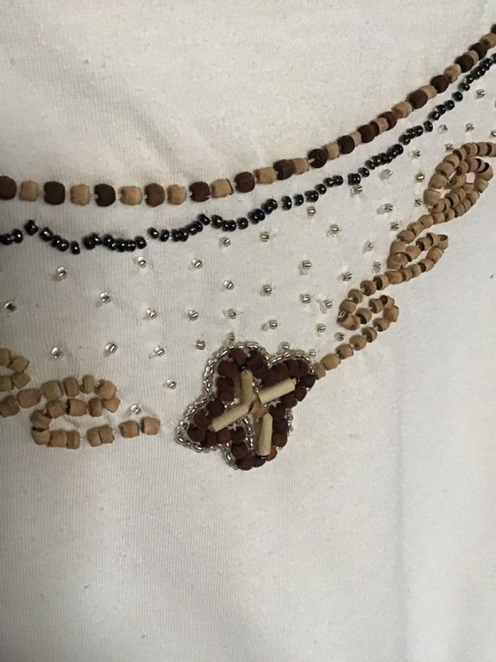 tee shirt avec motif cousu ressemblant à du bois des petites perles noires et des strass largeur d épaule de couture à couture 48 cms forme loose peut être porté par plusieurs tailles 38 au 44/46 vérifier les mensurations afin d éviter toute déception longueur 65 cms couleur blanc cassé crème ivoire #teeshirt3840 #teeshirt4042 #teeshirt4244 #teeshirt46 #teeshirtloose #teeshirtvintage #chantalmatejahauts42 #teeshirtfemme #chantalmateja2020