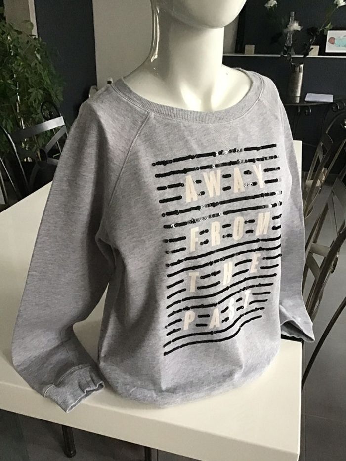 sweat ou tee shirt Mango motifs pampilles 100% coton #sweatfemme #taillem #teeshirtfemme #mango #sweat #gris #chantalmatejahauts38 #chantalmateja2020