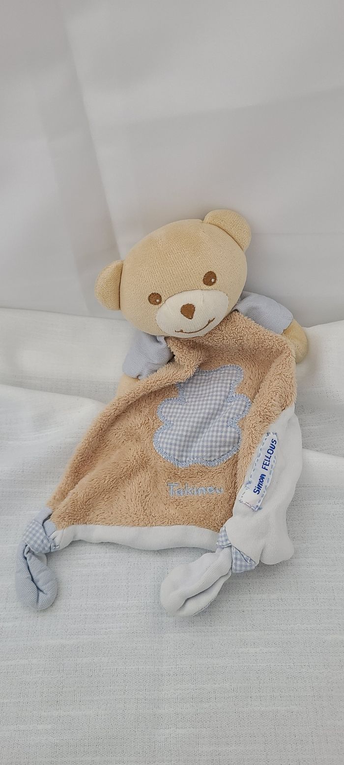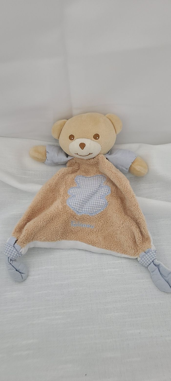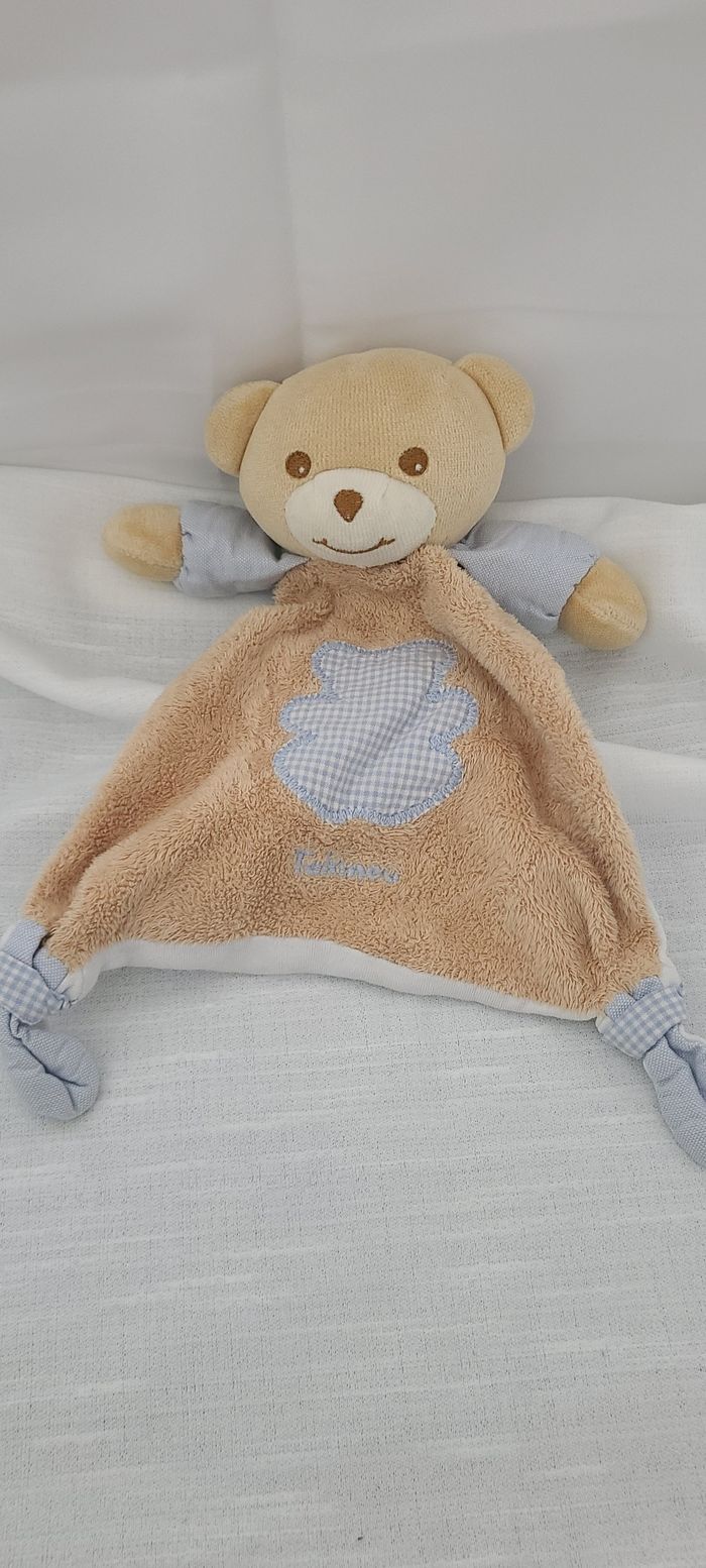 Ours TAKINOU doudou plat bleu et beige - photo numéro 1