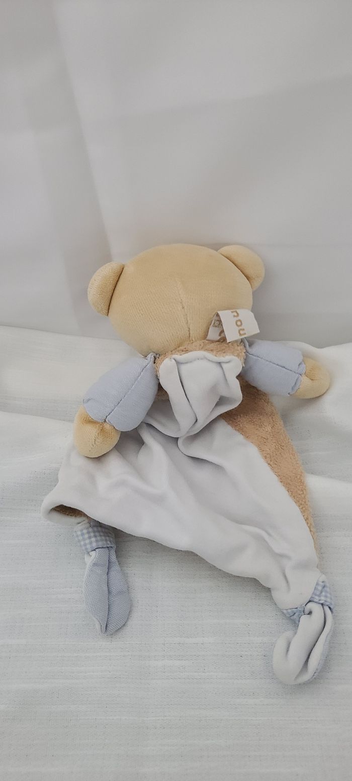 Ours TAKINOU doudou plat bleu et beige - photo numéro 3