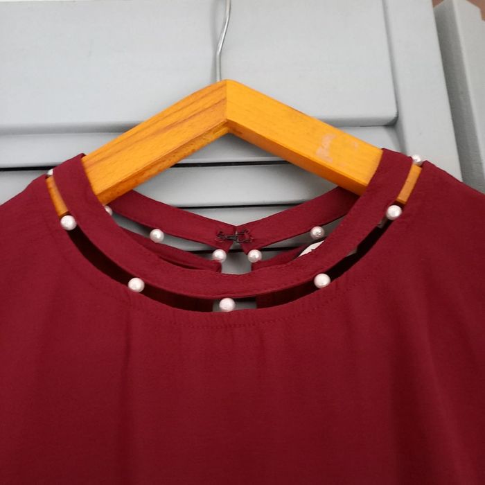 Tunique sans manche bordeaux avec perles - photo numéro 3