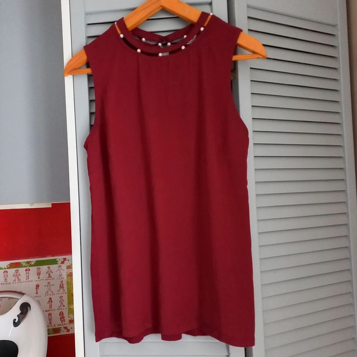 Tunique sans manche bordeaux avec perles - photo numéro 1