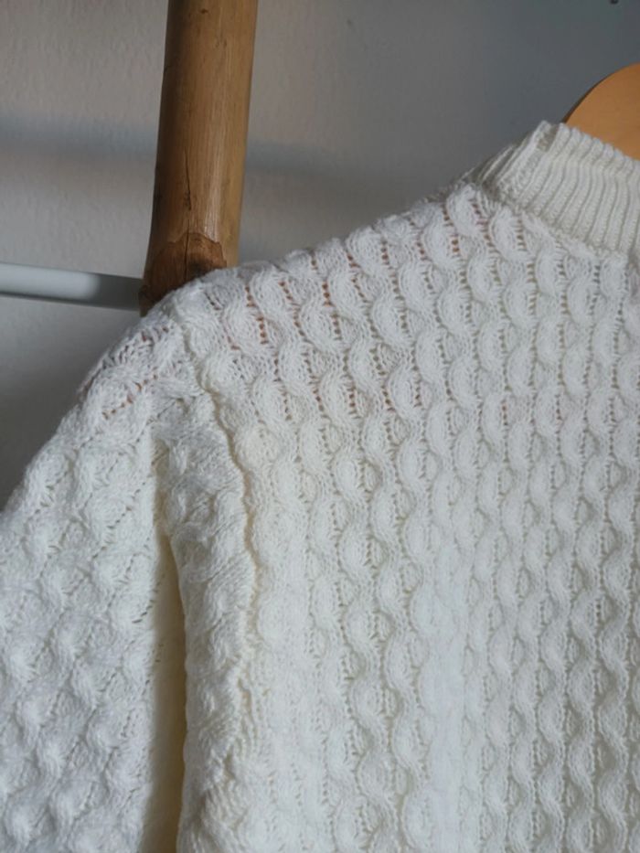Pull chaud court col montant maille épaisse Ecru Taille 38/40 Un pull pour femme, manches longues, qui conjugue douce chaleur de la laine et charme d'une maille épaisse reliefée façon nid d'abeille. Maille épaisse et chaude, superbement reliefée façon nid d'abeille, pour un pull qui conjugue fantaisie, féminité et confort. Col montant double côtelé rapporté. Bord-côtes tenant à la base et au bas des manches longues. Référence  :  PANTANI Coupe  :  Droite, standard Fermeture  :  À enfiler Dimensions  :  Couture épaule à la base: Longueur 62 cm Motif  :  Uni Plus produit  :  Extensible Composition  :  85% Acrylique, 15% Laine