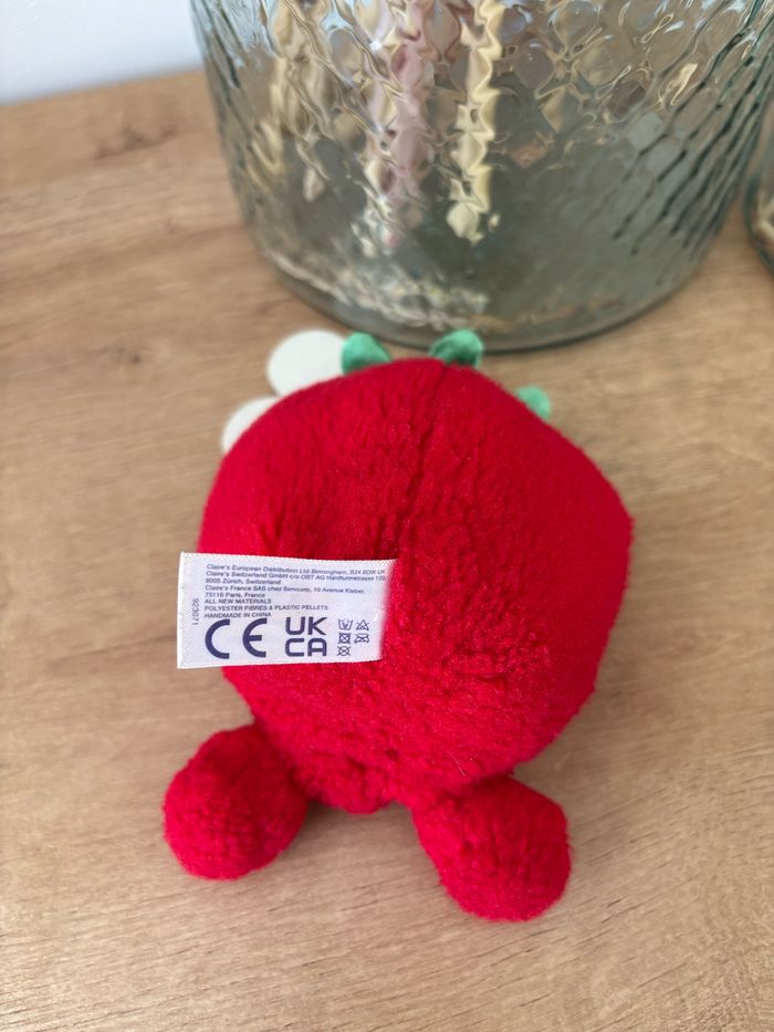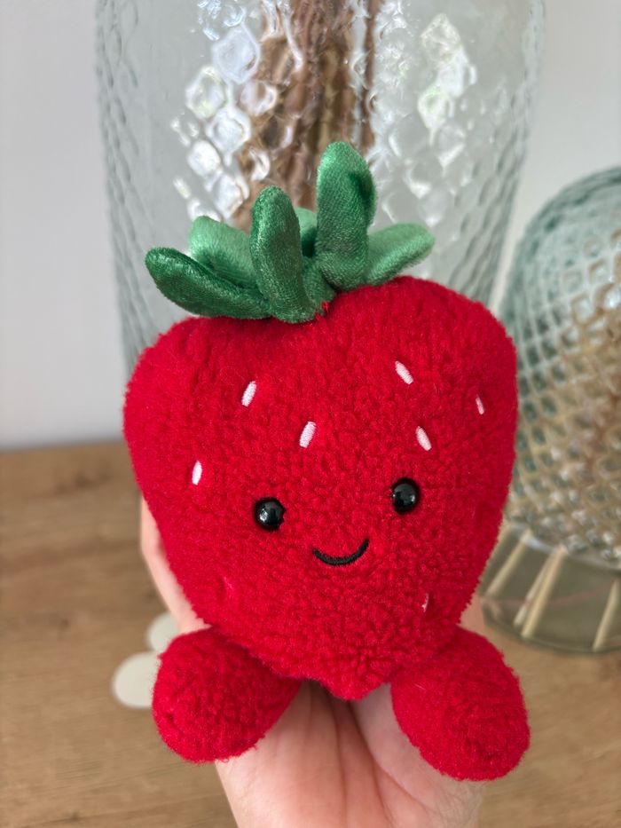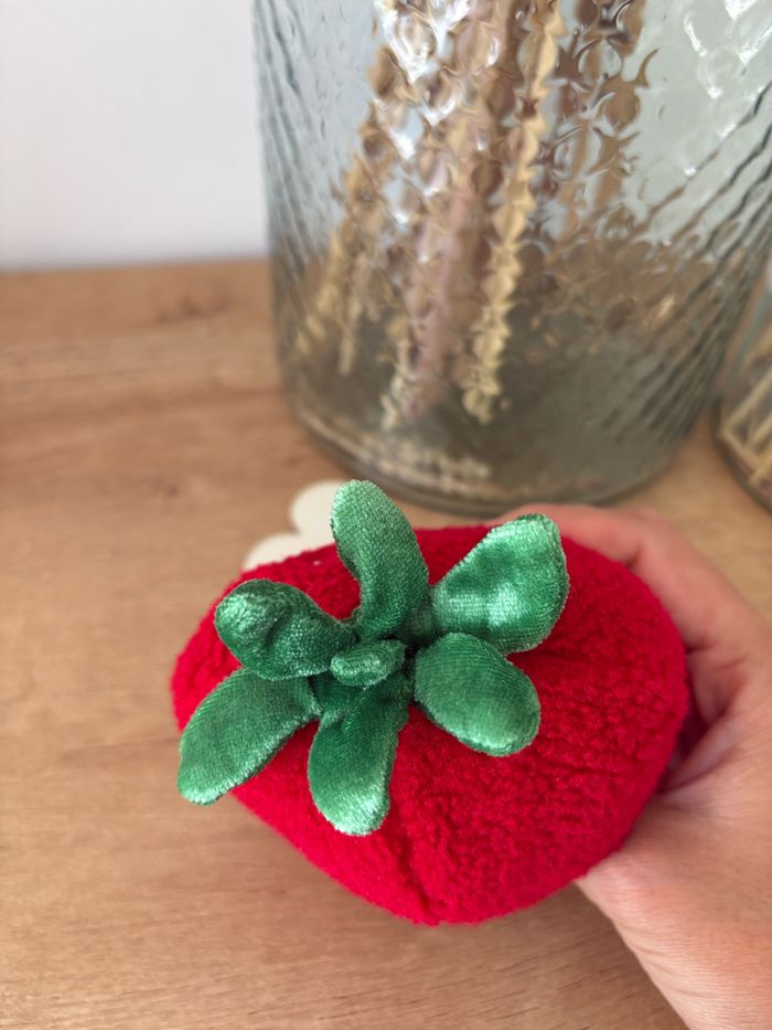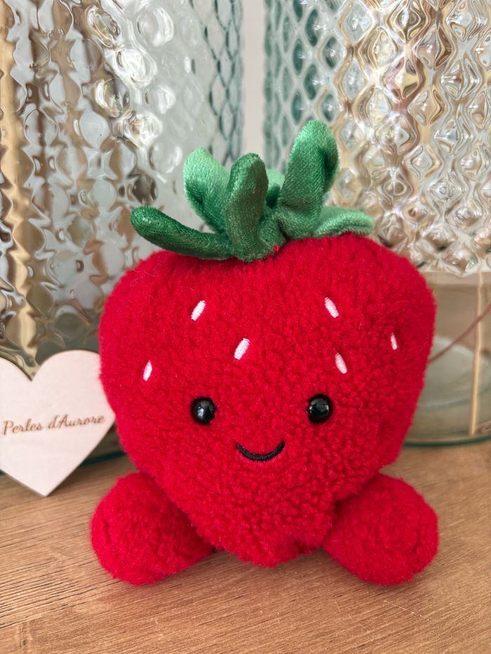 Très jolie peluche fraise Rouge et verte Les yeux sont en plastique noir Environ 15 cm Réf : C20