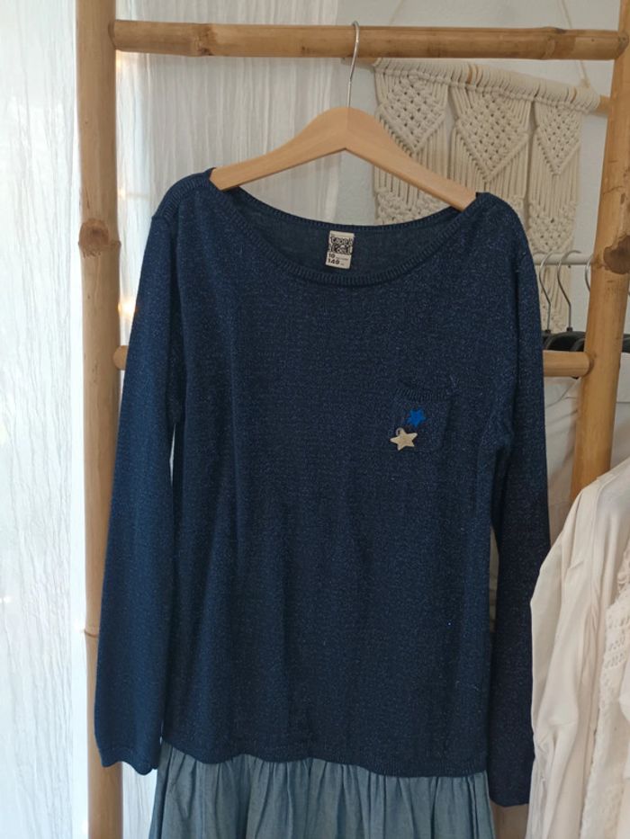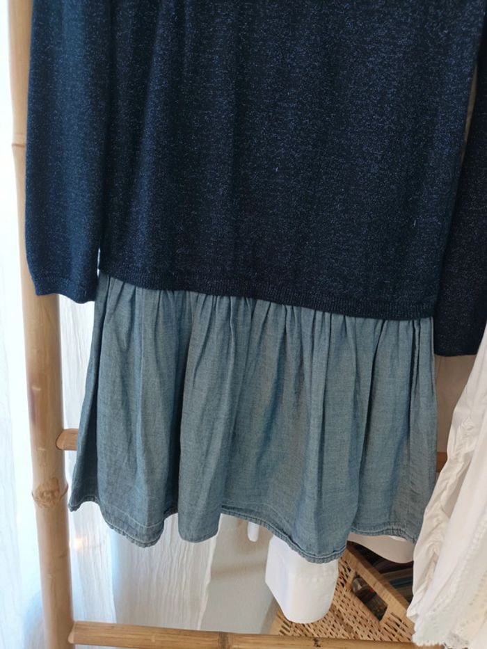Jolie robe bi matière Tape à l'œil 10 ans Haut bleu marine pailleté et jupe en jean fluide Peu portée Mots clés Maisons du monde Casa Muy Mucho Alinea Ikea Atmosphera Zara H&M Tajine Banane Petit Bateau Chicco Bopy Jacadi Kickers Dpam Okaïdi Pom d'api Salome home blanc beige crème nude tendance bohème boho chic naturel naturel lin coton scandinave bois macramé mural