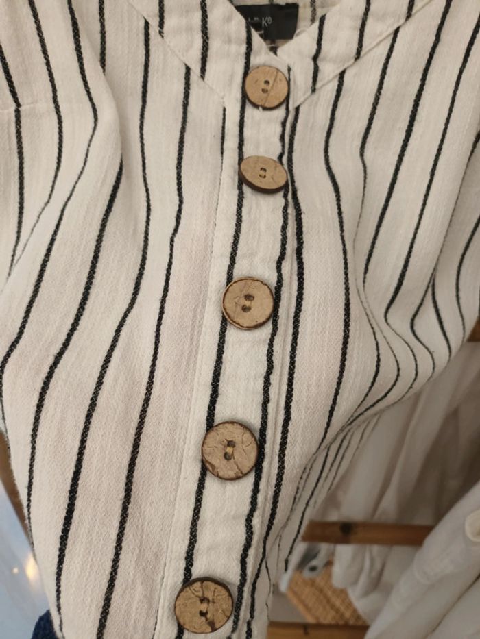 Joli haut rayé 100 % coton avec boutons en bois taille 38 - photo numéro 1