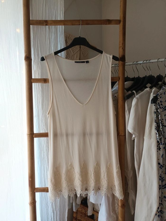Joli haut beige crème avec dentelle taille L - photo numéro 4