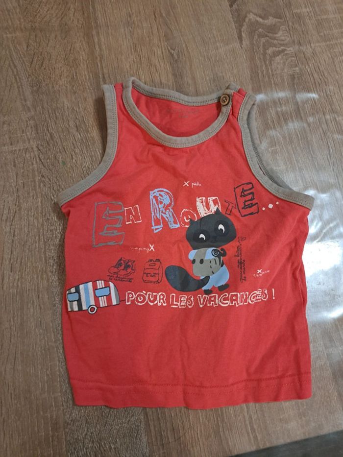 Débardeur - marcel rouge "en route pour les vacances" taille 2 ans en très bon état Marque In extenso #tshirt24mois #tshirt24mois