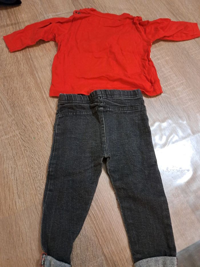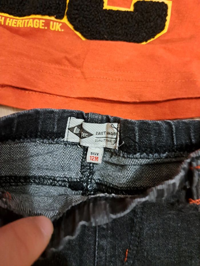 Ensemble Lee Cooper avec jean noir skinny et t-shirt rouge taille 12 mois en très bon état #leecooper #leecooperjeans #ensemble12mois #leecooper12mois