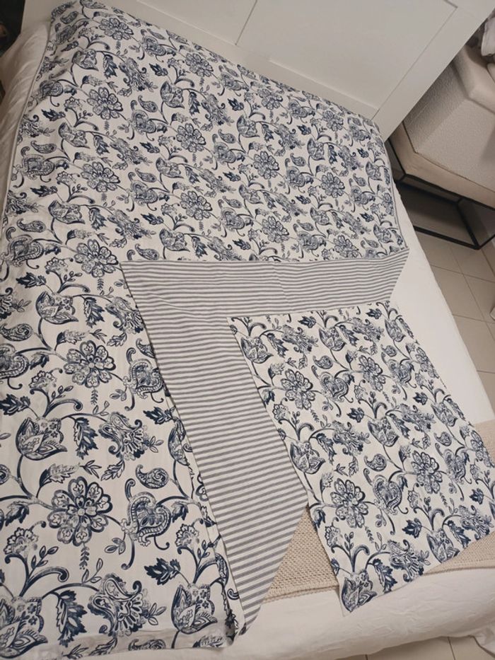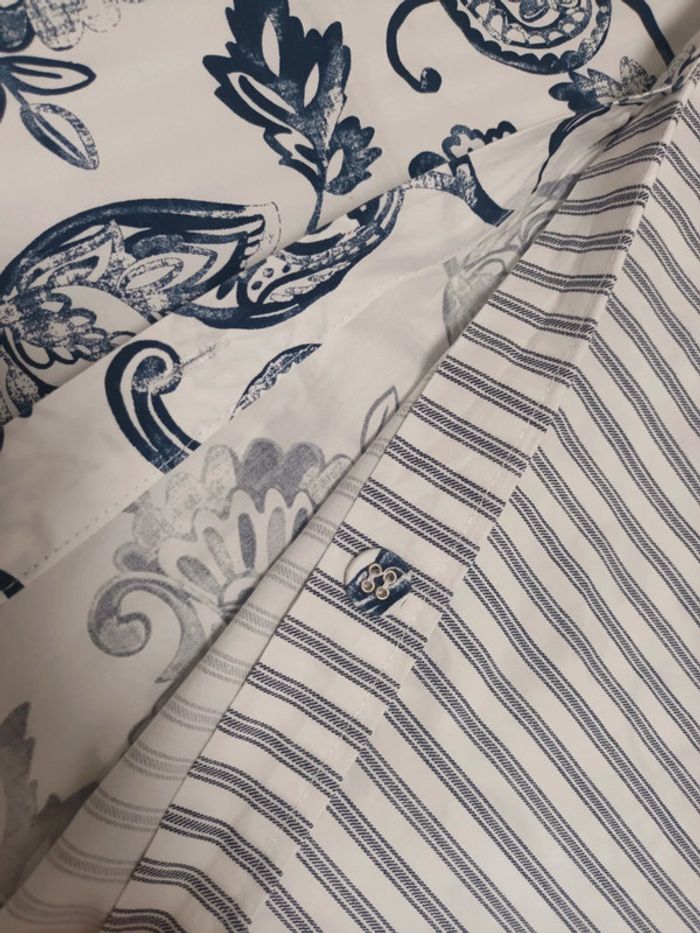 Jolie parure de lit double face fleuri / rayé (housse de couette 150 x 200 cm fermeture boutonnée + taie d'oreiller 65 x 65 cm) pour lit une personne jamais utilisée juste lavée puis rangée