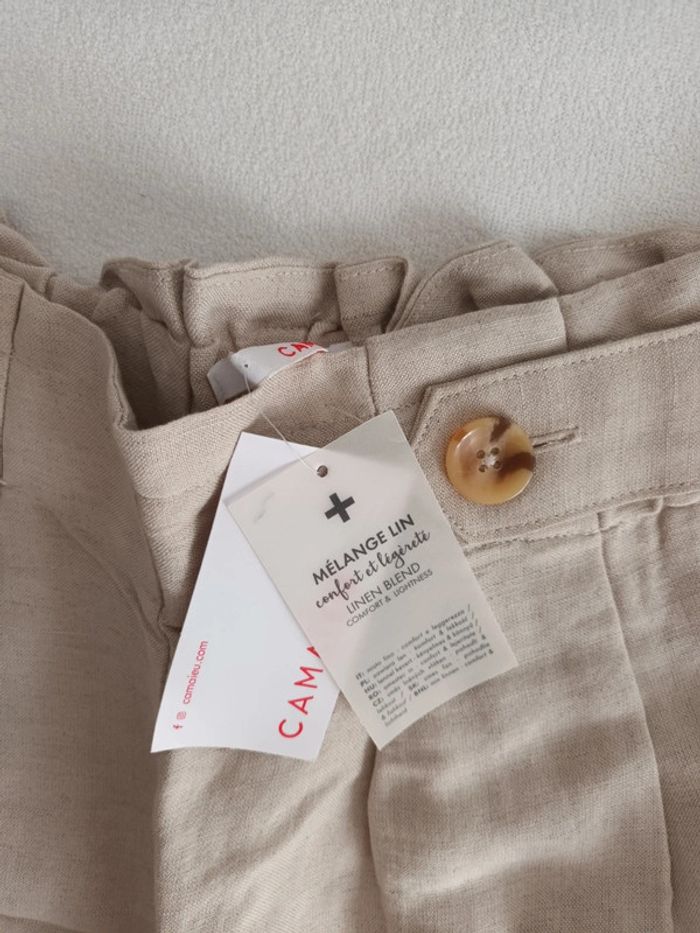Joli short en lin mélangé beige crème Camaïeu taille S neuf avec étiquette 🏷 - photo numéro 2