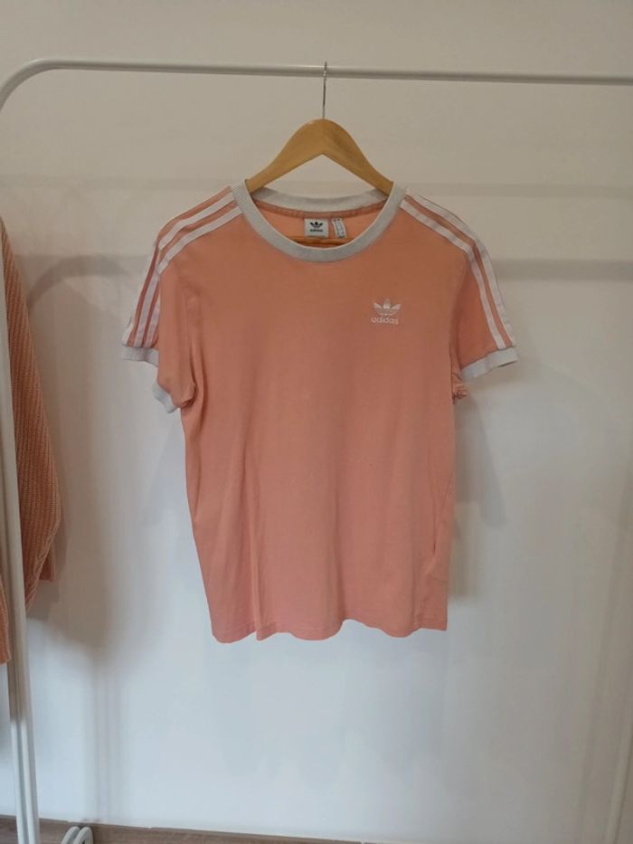 T-shirt Adidas rose et blanc taille 36 - photo numéro 1