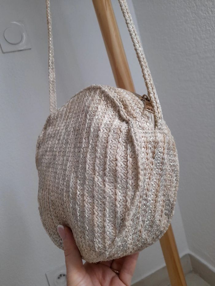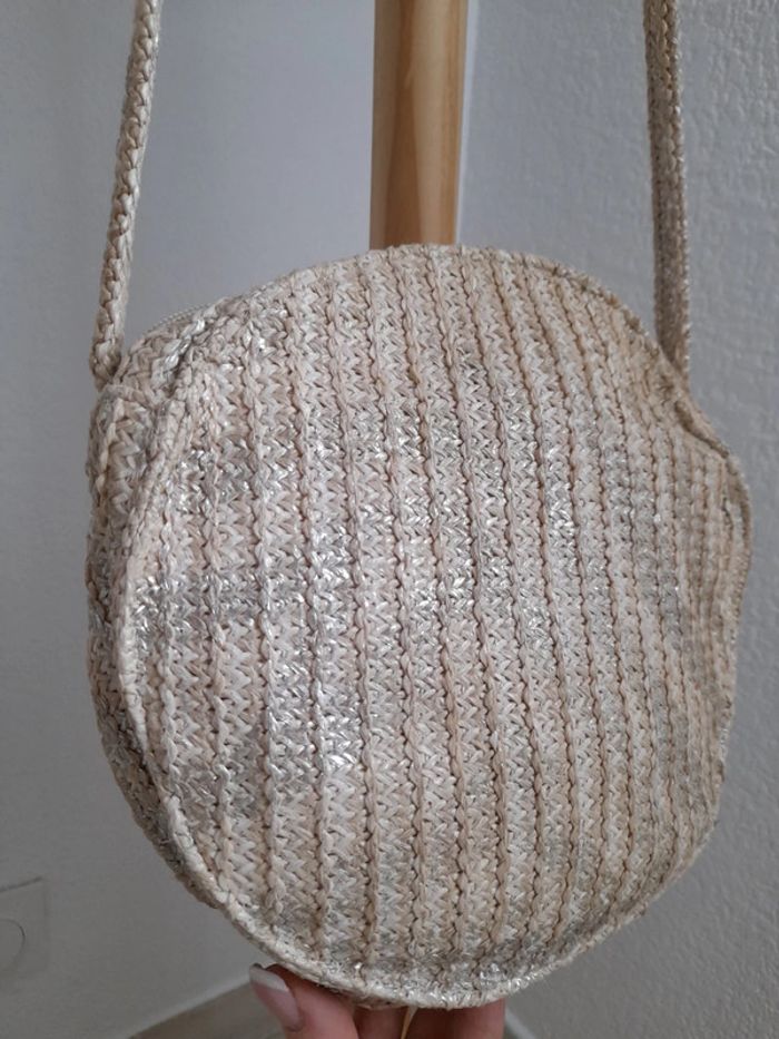 Joli sac bandoulière rond coloris naturel & argenté - photo numéro 2