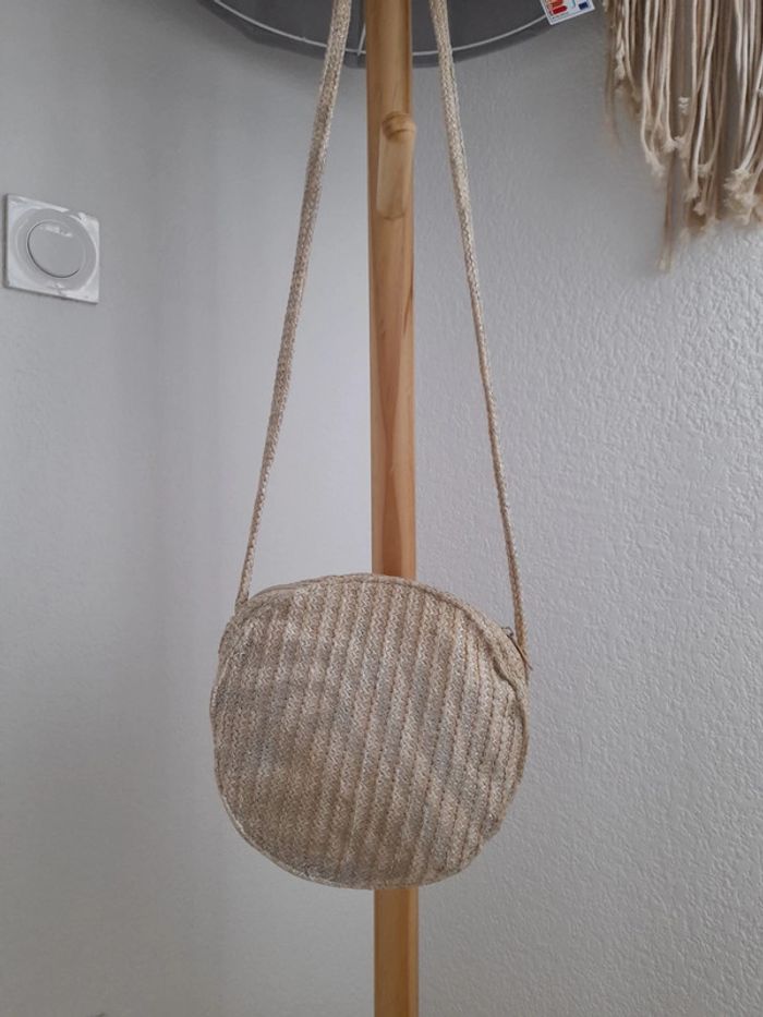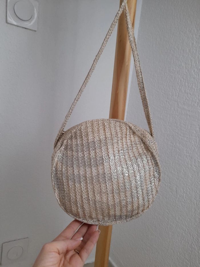Joli sac bandoulière rond coloris naturel & argenté - photo numéro 1
