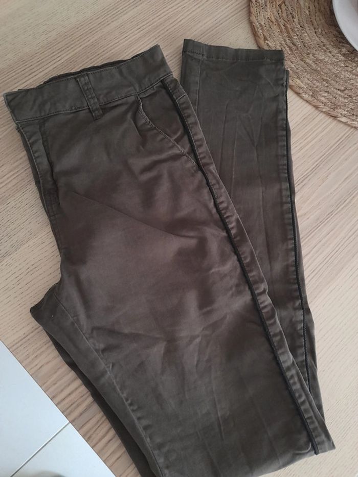 Pantalon chino marron avec liseré noir Promod 40 - photo numéro 2