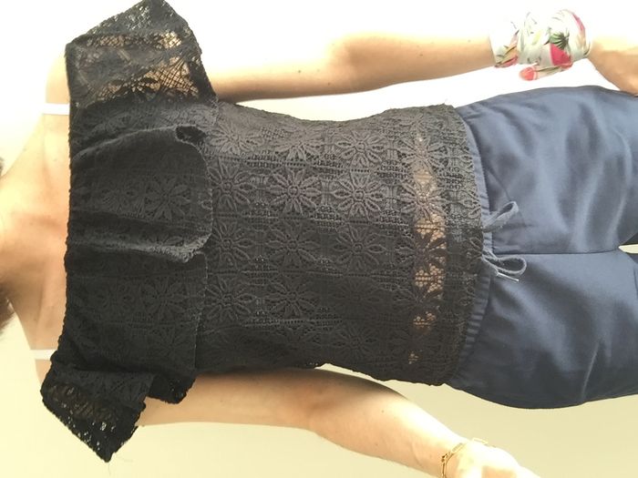 T-shirt en dentelle macramé, de chez pimkie, taille S, double épaisseur de tissu. Possibilité de le mettre en épaules dénudées.