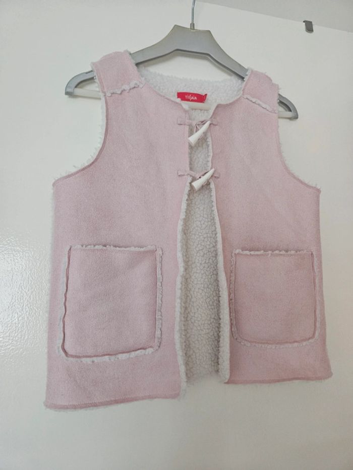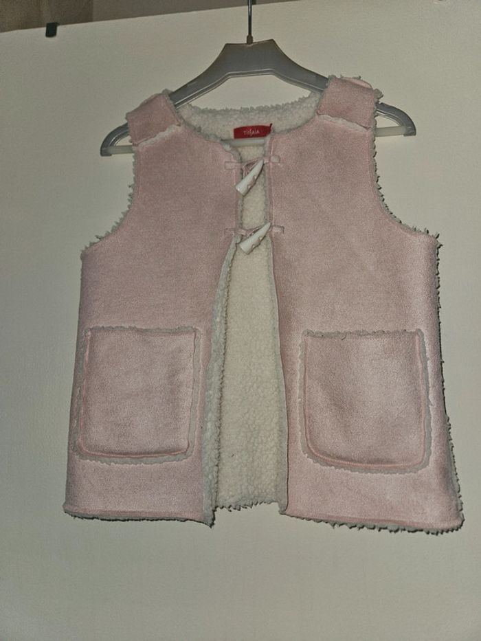 Joli Boléro/ veste sans manche Style mouton / daim Jamais porté Ideal pour finir une tenue #boléro #boleropeaudepeche #bolerostyledaim #bolerovieuxrose #vestesansmanche #fille6ans #boleromouton
