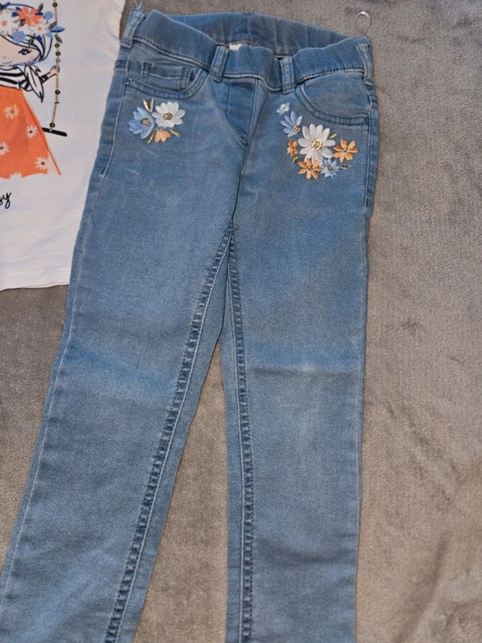 Joli ensemble 3 pièces C&A Taille 7 ans mais davantage 6 ans Très bon état , quasiment pas porté Comprenant un haut, un jean et un gilet. #ensembleC&A #jean6ans #giletblanc #giletblanc6ans #teeshirt6ans #ensembleprintemps #ensembleété