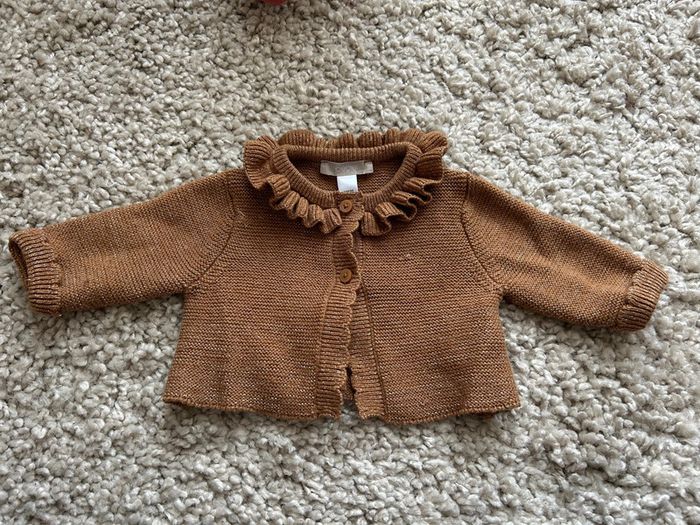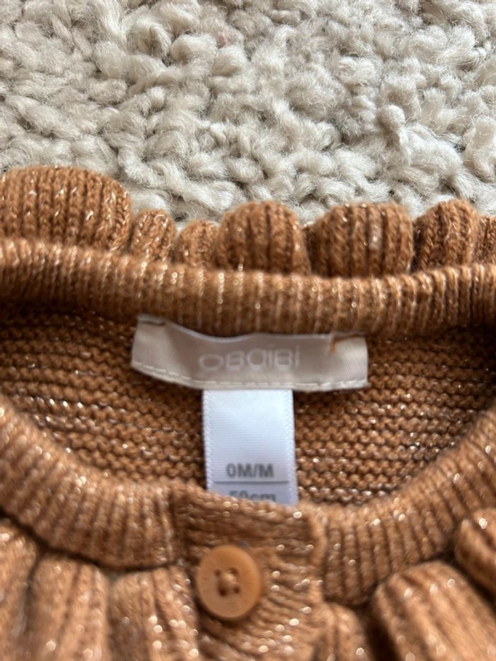 Joli gilet couleur camel à paillettes obaibi Mis une fois 0 mois 50 cm