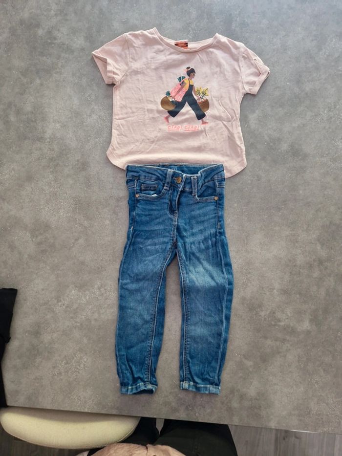 Ensemble 2 pièces fille. Jean et Tee-shirt manche courte rose. Taille 2 ans, très bon état.