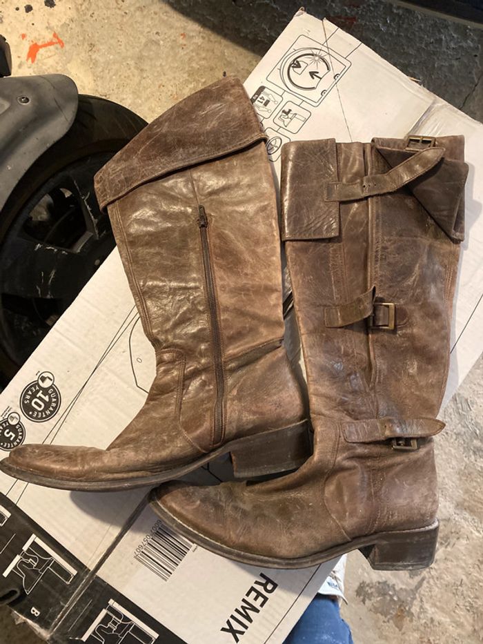 Très peu portées Taille 40 Couleur marron Payées + 150€ Réglable sur toute la hauteur de jambe Très Petit prix car Vente urgente